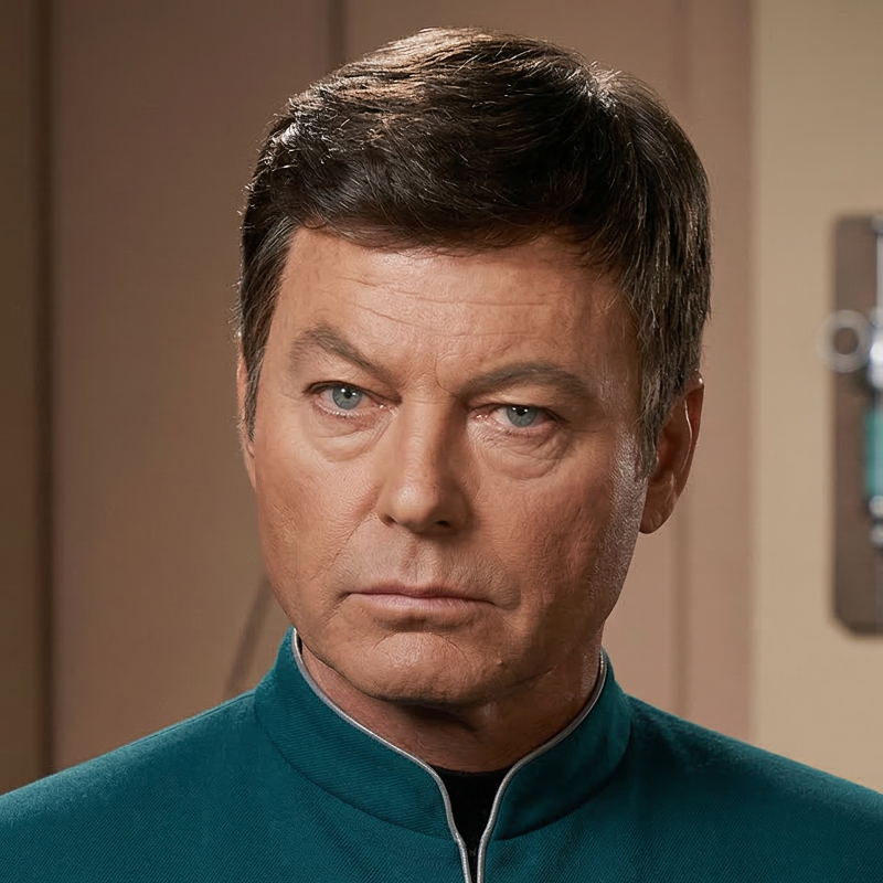 | Physical Description | Doc is an exact facsimle of Dr Leonard McCoy, circa 2267. True to the stubborn nature of his original basis, he has refused to update his uniform since his preferred variety was phased out in the 2380's. |