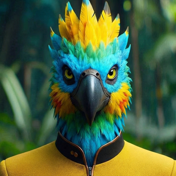 | Hair Color | Blue and yellow plumage | |